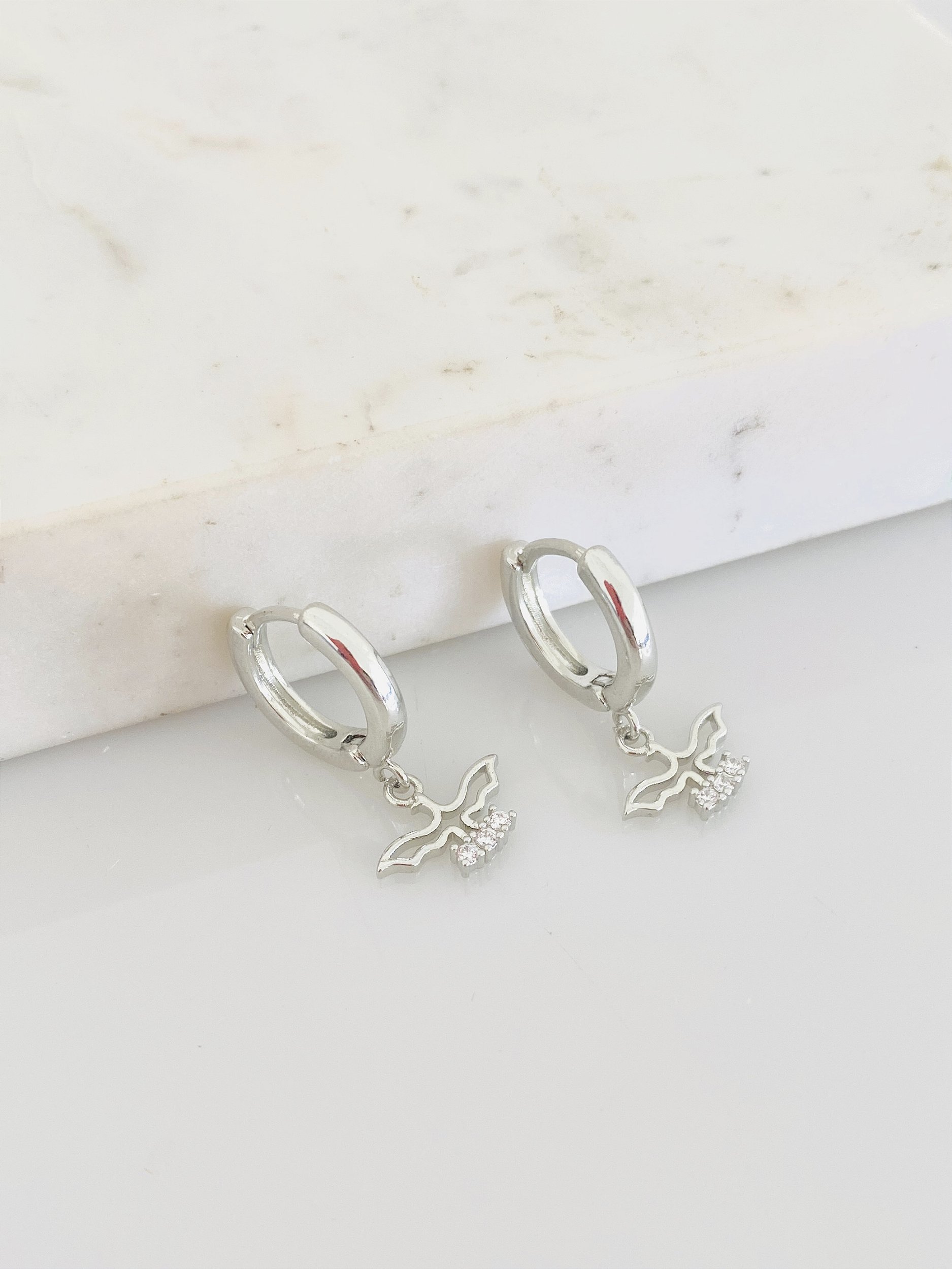 Descrição: Brinco de argola click com EspíritoSanto em banho de rôdio branco, tamanho 3cm