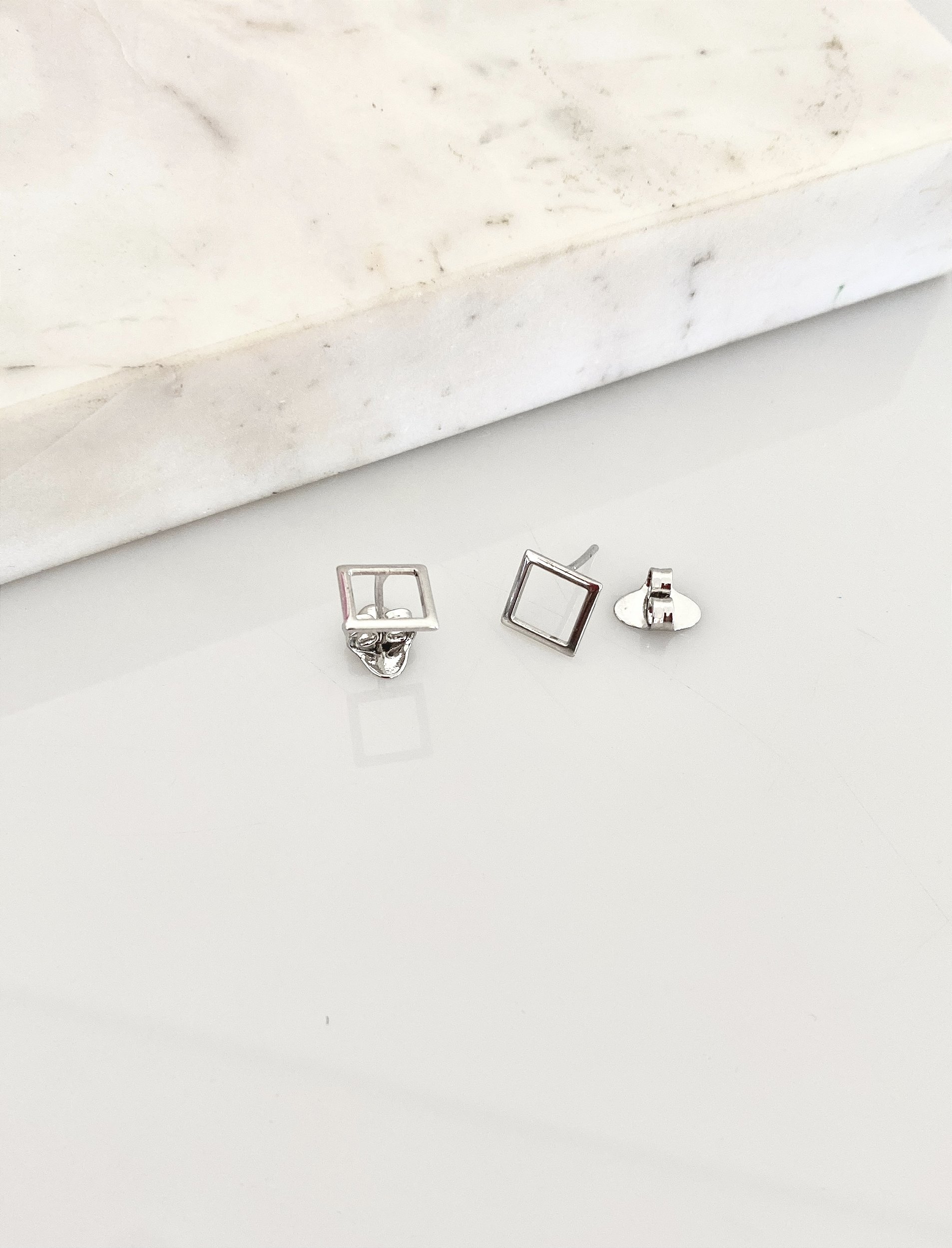 Descrição: Brinco quadrado em rodio