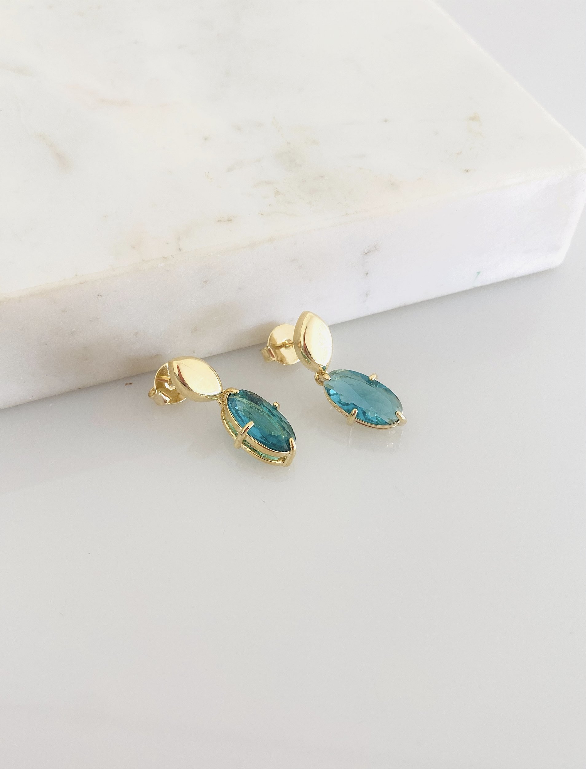 Descrição: Brinco com pedra Turmalina Fusion com 2,6cm em banho de ouro 18k