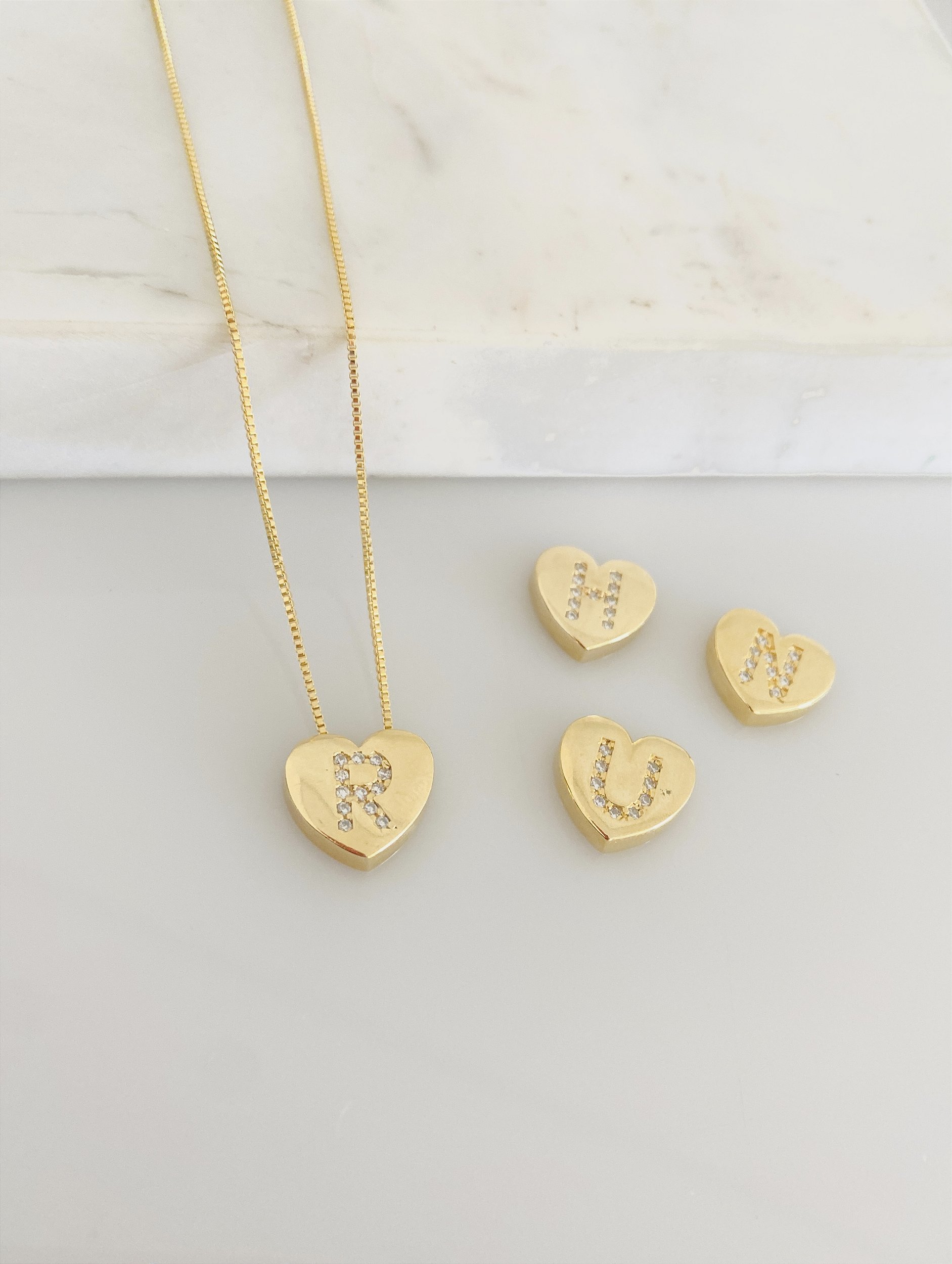 Descrição: Colar coração com letra cravejada na corrente de 45cm