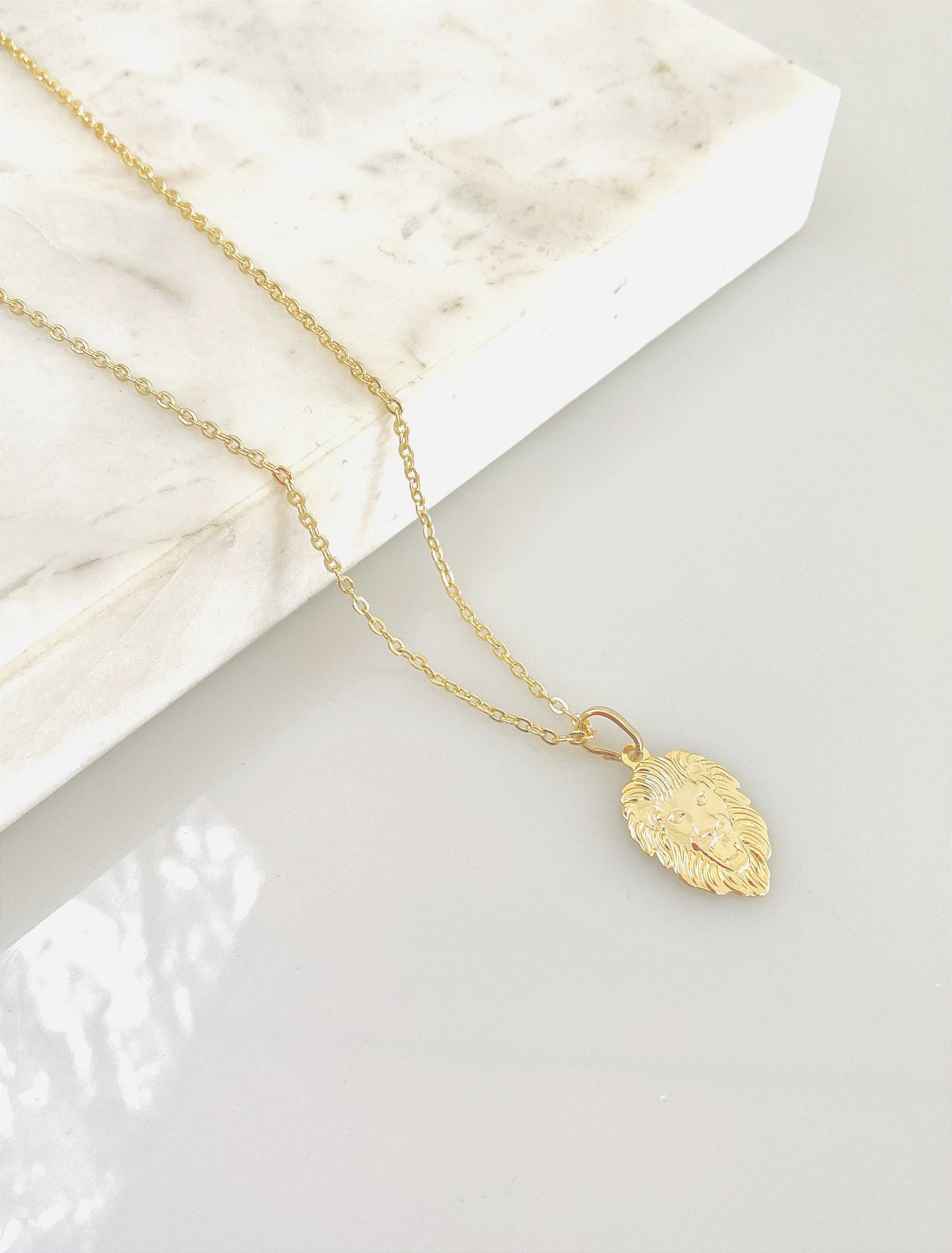 Descrição: Colar Leão na corrente de elinhos em semijoia