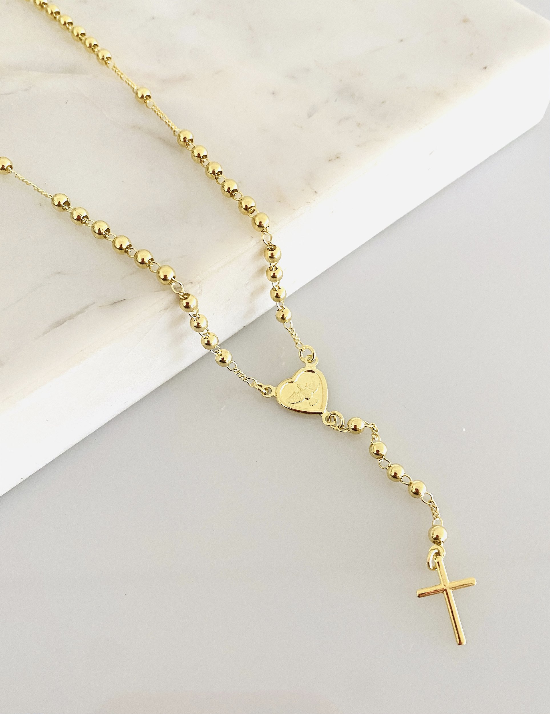 Descrição: Colar tercinho com Espírito Santo com 45cm em semijoia banhado a ouro 18k