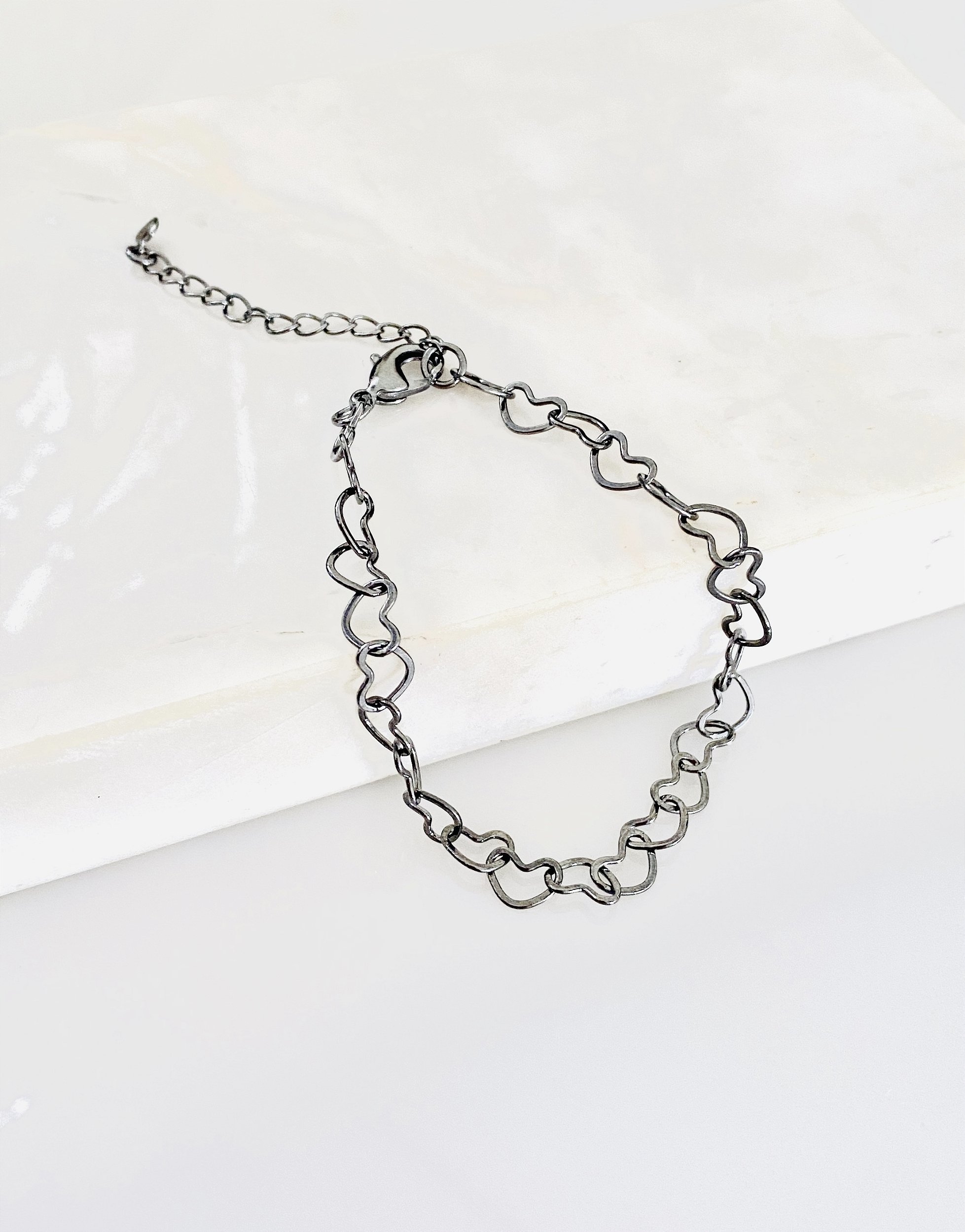 Descrição: Pulseira corrente coração com banho de rôdio negro