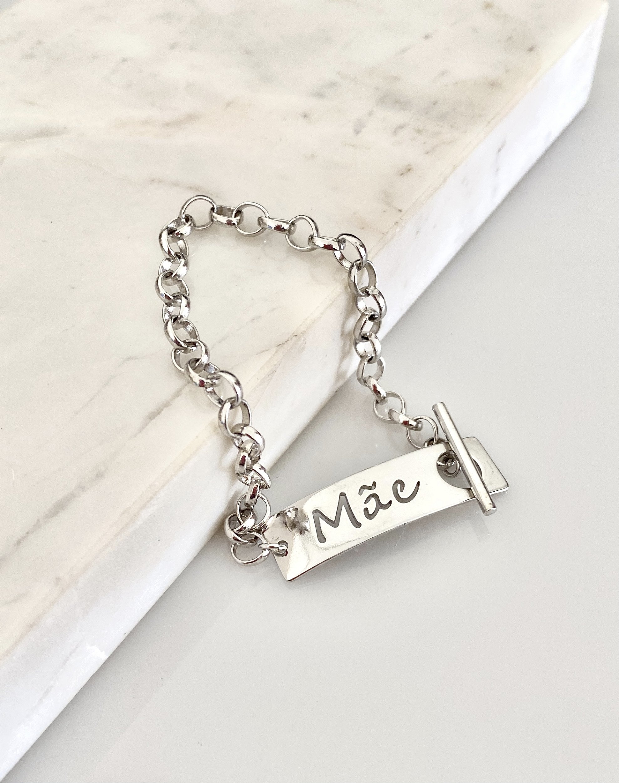 Descrição: Pulseira Mãe no elo portugues em semijoia