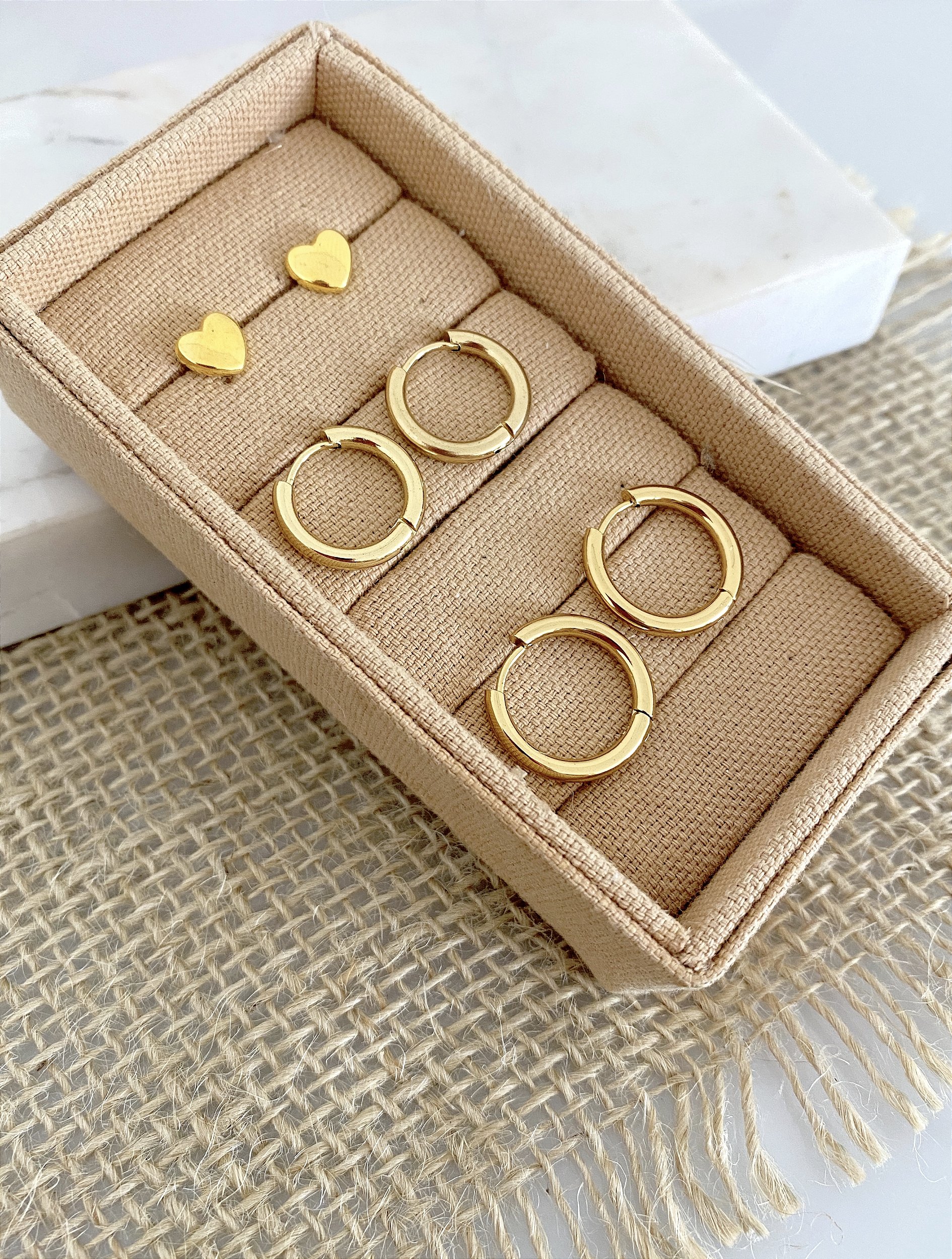 Descrição: Trio de argola com coração em aço inox 316L Premium